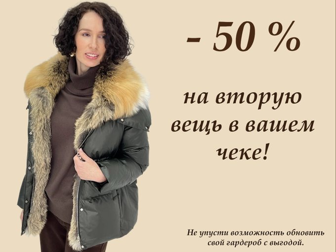 - 50 % на вторую вещь в вашем чеке!